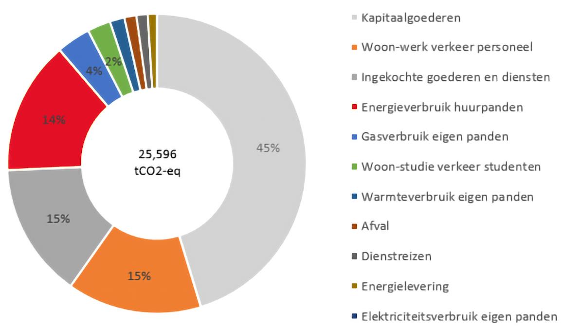 In het figuur hieronder staat de verdeling van de CO₂-footprint van ROCvA-F over de verschillende impactcategorieën in 2024.