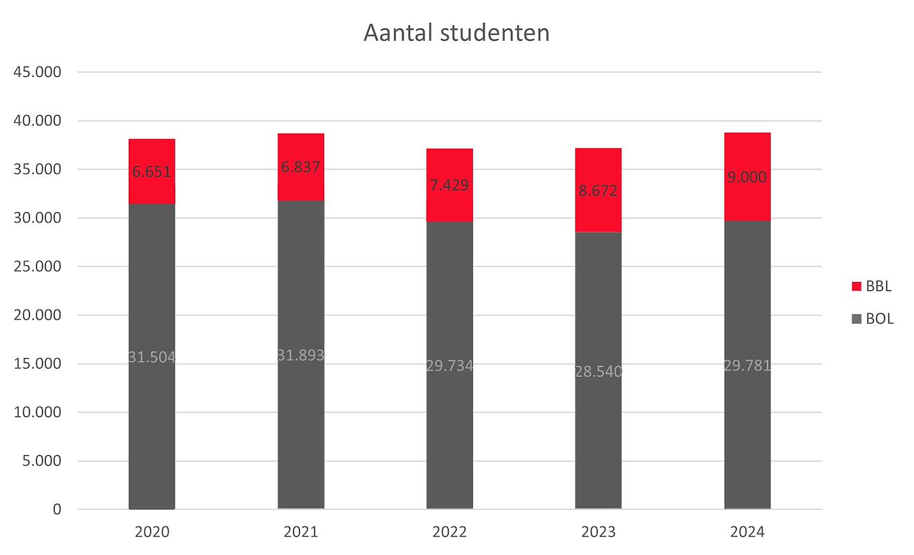 Figuur 5: Aantal studenten bol en bbl 2020-2024